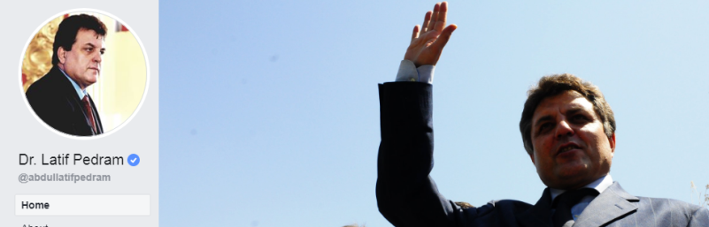 The original facebook page of Abdul Latif Pedram has his two photographs, in one he waves his hand.