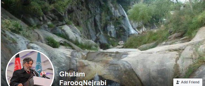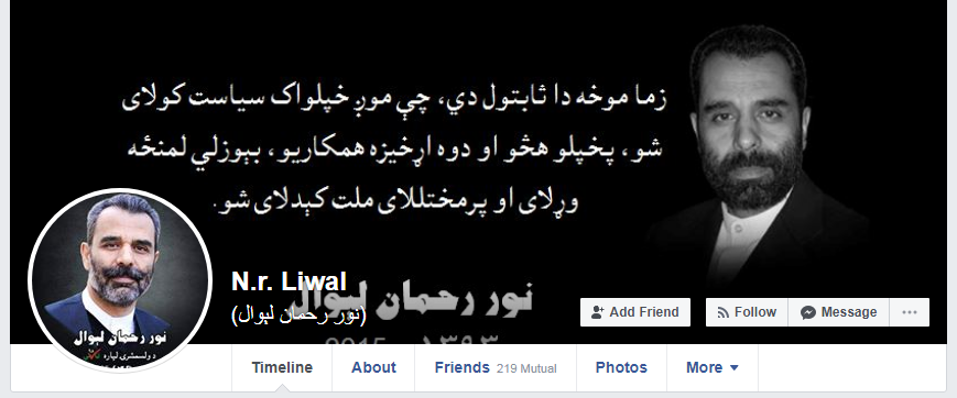 The original facebook page of Hanif Atmar has his photograph and a public gathering photograph in the cover.