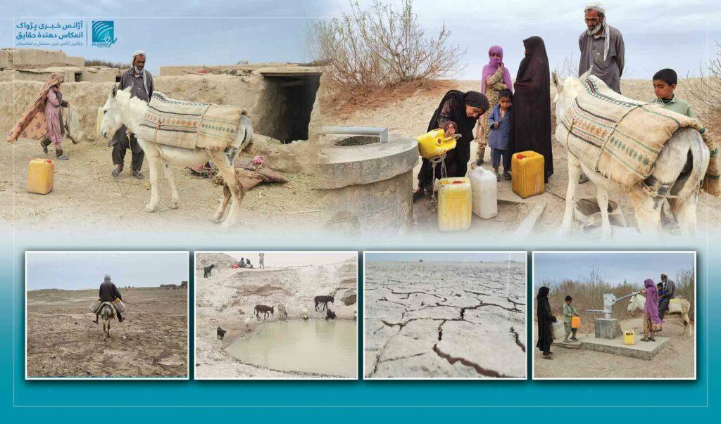 Abdullah, 50, from Khoday Rahim village in Zaranj city, shares a similar experience. Riding a mule, he travels with a group of women and children to fetch water from a well in a neighboring village. “The wells in our village have dried up,” he says. “I can get there in an hour, but the women walk on foot for two hours. The water is salty, but we have no choice but to use it.”