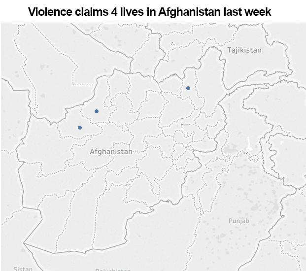 Four people were killed in various incidents of violence across Afghanistan last week.