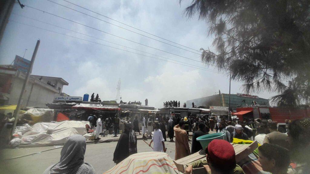Mutaqi added that 350,000 afghanis in cash, belonging to one shopkeeper, was recovered by firefighters and security personnel and returned to the owner, although his shop was completely burned.