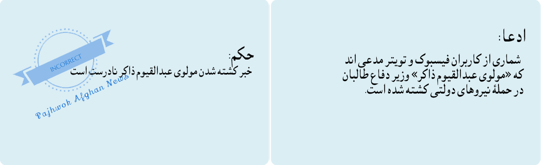 فیصله: آوازۀ کشته شدن مولوی عبدالقیوم ذاکر، نادرست است.