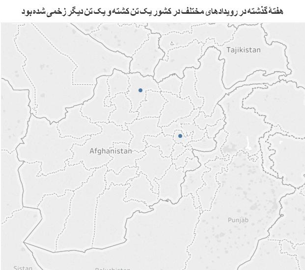 هفتۀ گذشته در رویدادهای مختلف در کشور یک تن کشته و یک تن دیگر زخمی شدهاست.