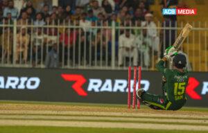 د پاکستان لوبغاړی پر ځمکه غورځیدلی