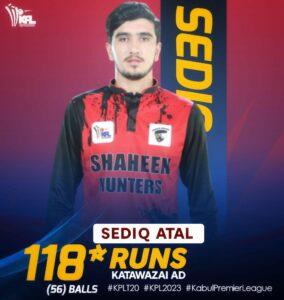 صدیق اتل چې د کابل پریمیر لیګ سیالیو د شاهین هنټرز لوبډلې لوبډلمشر هم دی، یادې شپږیزې یې د شنبې په ورځ (د زمري ۷مه) د اباسین ډیفنډرز لوبډلې پر وړاندې ووهلې.
