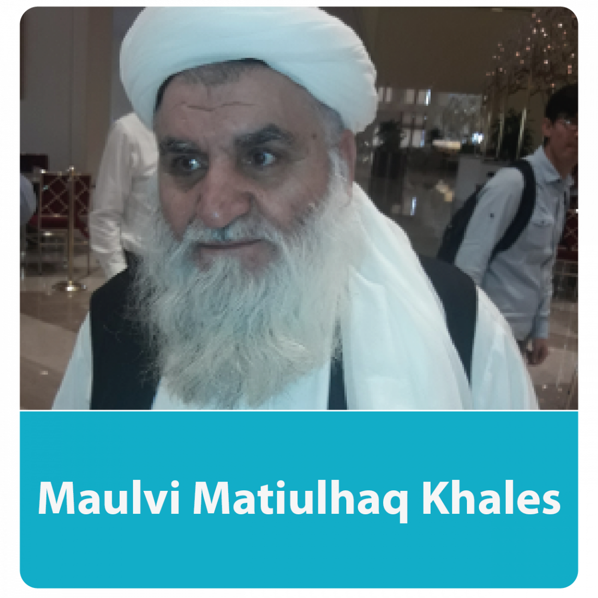 13- Maulvi Matiulhaq Khales: MaulviMatiulhaqKhales is resident of Nangarhar province and the son of former Jihadi Commander Maulvi Khales. He completed his bachelor education in Madina Monawwara. He left the country after the Taliban regime and created an armed group called Torabora Mahaz for some time. Khales is currently a member of the Taliban negotiating team.